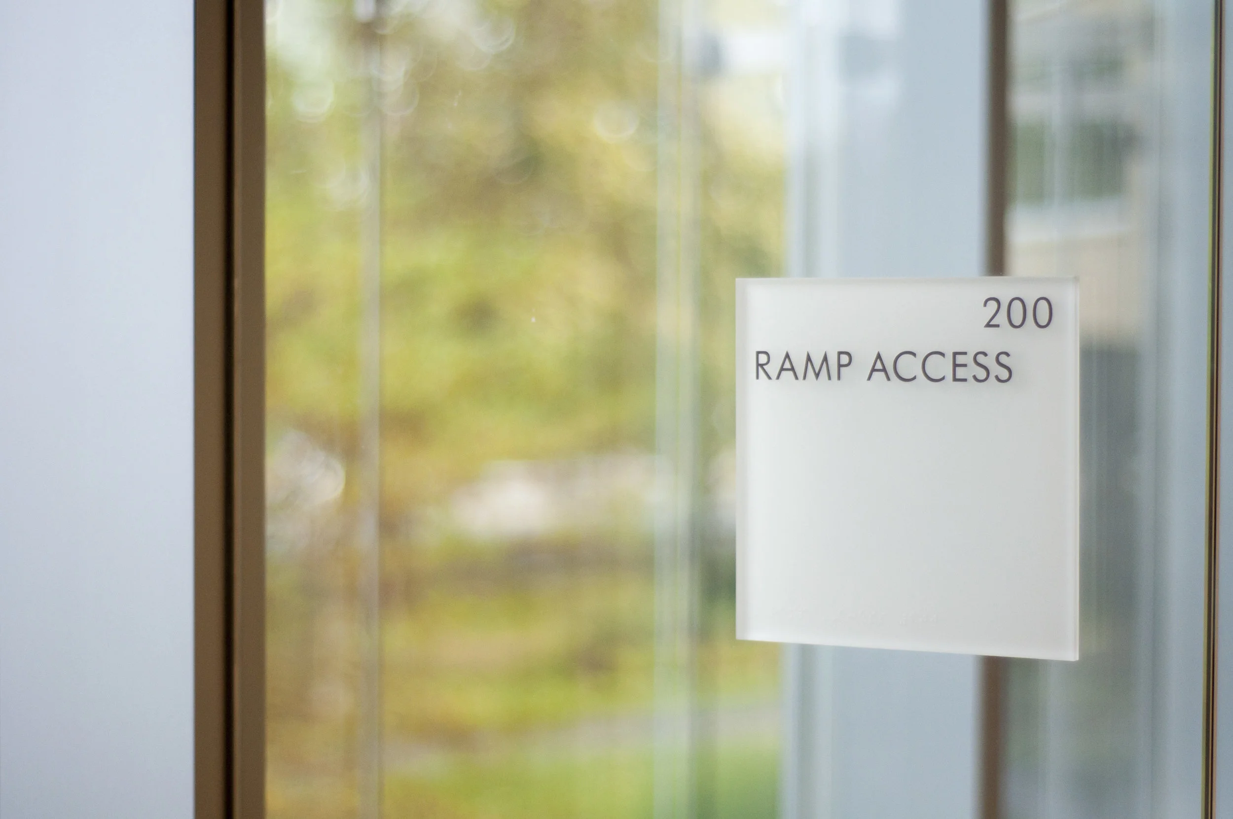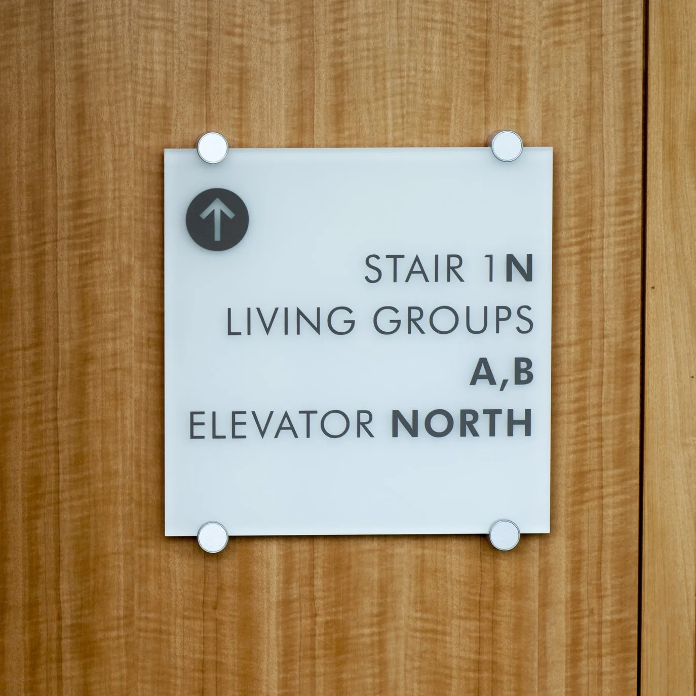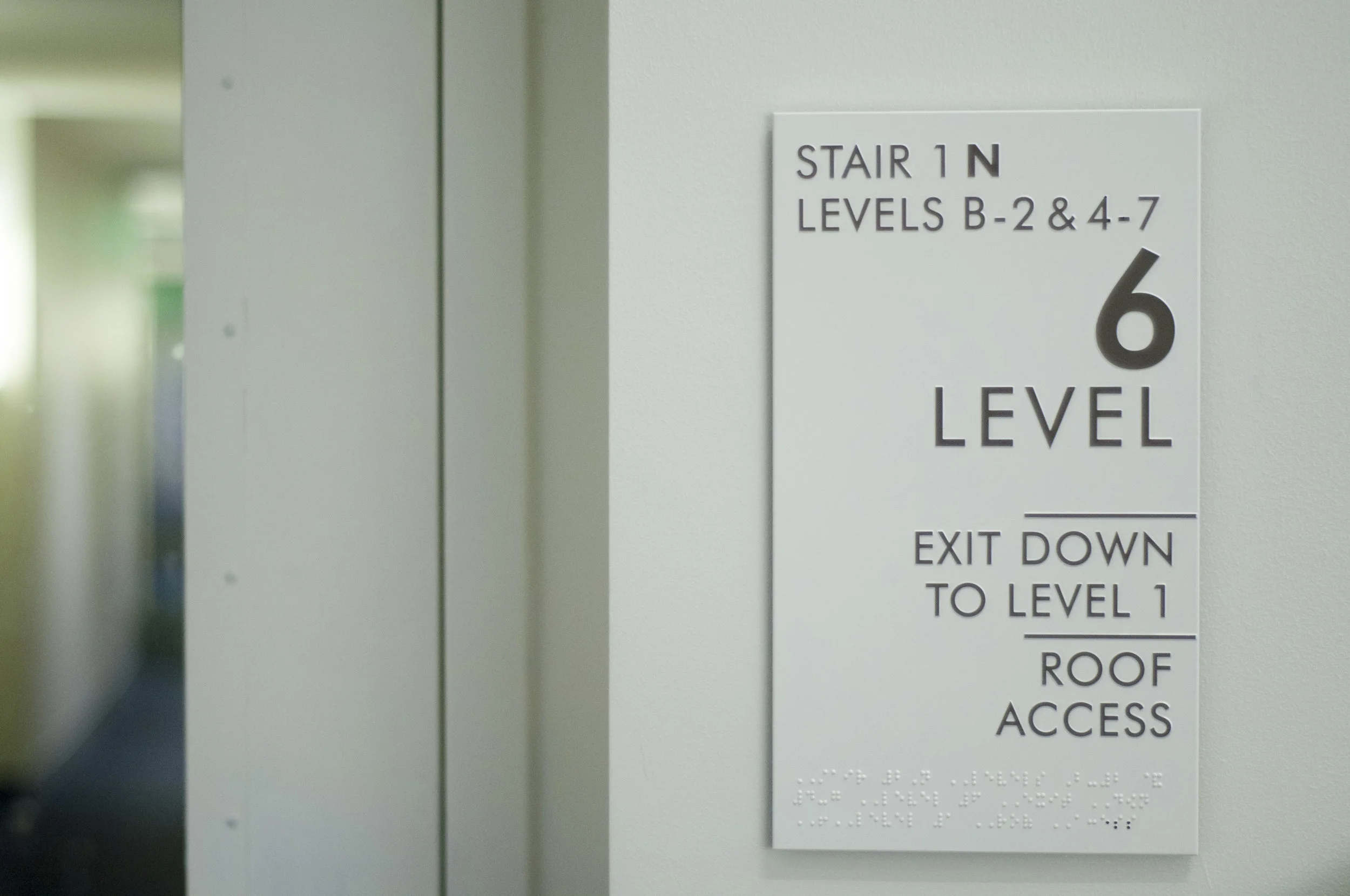 The creation of a comprehensive signage master plan for Harvard's Tata Hall, including tactile maps and directional signage. 3-dimensional block lettering was used to highlight classrooms, living groups, and elevators. Donor Recognition was designed for the main entry area, with individual aluminum letters inlaid into perforated wood panels.